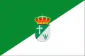 - «Bandera rectangular, de proporciones 2/3, formada por dos triángulos que forma la diagonal del ángulo inferior del asta al superior del batiente, verde junto al asta y blanco en el batiente, con el escudo municipal brochante al centro y en sus colores».[4]
