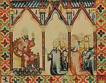 ![]() Representación de Ibn Hud en las Cantigas de Santa María por Alfonso X el Sabio | ||