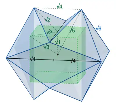 - Coxeter, H.S.M. (1973). «Section 3.7: Coordinates for the vertices of the regular and quasi-regular solids». Regular Polytopes (3rd edición). New York: Dover.; 1st ed., Methuen, 1947