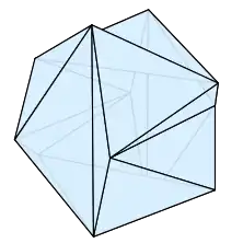 El icosaedro de Jessen, a veces llamado icosaedro ortogonal de Jessen, es un poliedro no convexo con el mismo número de vértices, aristas y caras que el icosaedro regular. Lleva el nombre de Børge Jessen, quien lo estudió en 1967.[1] En 1971, Adrien Douady descubrió y estudió de forma independiente una familia de poliedros no convexos que incluían esta forma con el nombre de pomelo de seis picos (six-beaked shaddock en inglés).[2][3] Autores posteriores han aplicado variantes de este nombre más específicamente al icosaedro de Jessen.[4]
