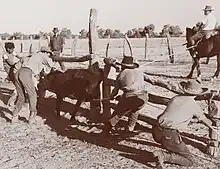 El marcaje bronco es un antiguo método de capturar ganado sin marca en las estaciones de ganado del Extremo Superior para su marca en Australia. Un caballo pesado, por lo general emparentado con algún caballo de tiro, y normalmente equipado con un arnés de caballo al cuello, se utiliza para asegurar al ternero elegido. El ternero, a continuación, se eleva a varios paneles cubierto y a un poste construido para el propósito en el centro del patio. Los ganaderos demontados del caballo le atan las patas y lo tiran al suelo para asignarles la marca, marcarles la oreja y castrados (si es un toro). Con la llegada de las cunas portátiles, este método de identificación ha ido quedándose desfasado en las estaciones. Sin embargo, ahora hay algunos concursos de marcaje de broncos en los rodeos y joranadas de campdrafting, etc.[8]