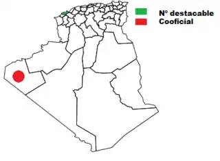 La zona oeste del país, la más próxima a España, es la que dispone de más centros donde se imparte el español y esta tendencia se disipa progresivamente a medida que se avanza hacia el este. Como dato orientativo, en la tabla inferior ofrecida por Ahmed Ounane se observa la presencia del español en los centros de secundaria del oeste argelino:[12]