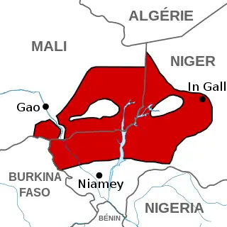 Lo usan como segunda lengua los hablantes de tagdal y tasawag, ambas lenguas mixtas pertenecientes a las lenguas sonhay septentrionales .