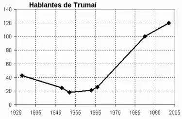 La lengua trumaí es un ejemplo inusual de recuperación lingüística, ya que el número de hablantes ha experimentado una importante recuperación desde la segunda mitad del siglo XX: