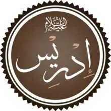 ![]() El nombre Idrís escrito en caligrafía islámica seguido de La paz sea con él. | ||