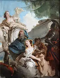 La ceremonia nupcial está próxima y las festividades requieren danzas y coros. Cuando la pareja va al templo, sin embargo, Arcas, el capitán de los guardas de Agamenón, revela que el rey está esperando a su hija ante el altar para matarla. Aquiles y Clitemnestra se apresuran a salvar a la muchacha para que no sea sacrificada. Al final, parte que Agamenón renuncia a su plan de matarla.