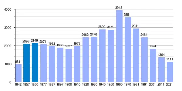 | Gráfica de evolución demográfica de Igüeña[8] entre 1842 y 2021 |