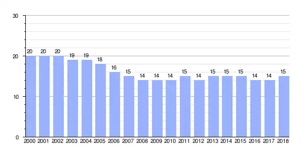 | Gráfica de evolución demográfica de Igrexario entre 2000 y 2018 |