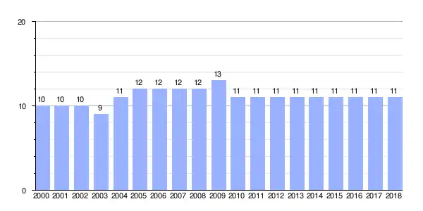 | Gráfica de evolución demográfica de Iglesia entre 2000 y 2018 |