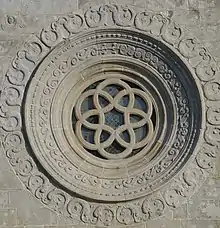 Elementos manuelinos y platerescos predominan en la estructura y decoración externa de la cabecera, emparentada con las de la Sé de Braga y la de Santa Maria Mayor de Pontevedra. Ambos pórticos son renacentistas. El portal principal está bajo un rosetón. El portal meridional, atribuido a João de Tolosa, presenta la decoración escultórica más elaborada y la iconografía más compleja de todo el conjunto.
