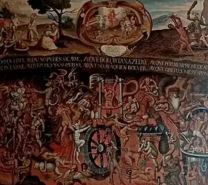 El estilo del templo es barroco, el frontis es de estilo renacentista y en su interior se encuentran valiosos lienzos sobre el Infierno, el Paraíso, la Sagrada Familia y el Vía Crucis de Jesucristo.[3]