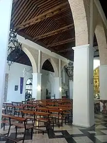 Iglesia de estilo mudéjar compuesta de tres naves, siendo la central mucho más grande que las laterales, separadas por arcos ojivales.