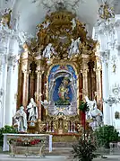La construcción de la iglesia actual comenzó en 1720 bajo el rector Ivo Bader. Sin embargo, su sucesor, el preboste Herkulan Karg (desde 1728) es considerado el verdadero creador de la magnífica iglesia. Karg (retrato en la nave) realizó dos viajes de estudio en 1731 y 1733 para preparar la construcción de la iglesia, después de haber consultado a Johann Michael Fischer como experto en 1729. El arquitecto de la corte de Munich, François de Cuvilliés, probablemente participó en el diseño. Los mejores trabajadores contemporáneos de Munich, Augsburg y la Wessobrunn School también participaron en el mobiliario. La colaboración de pintores como Johann Georg Bergmüller y Johann Evangelist Holzer, con los yeseros Franz Xaver Feichtmayr, Johann Michael Feichtmayr y Johann Georg Üblhör, así como los escultores Johann Baptist Straub y Johann Joachim Dietrich (1690-1753) creó una de las obras de arte espacial barroco más importantes de Baviera. .