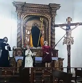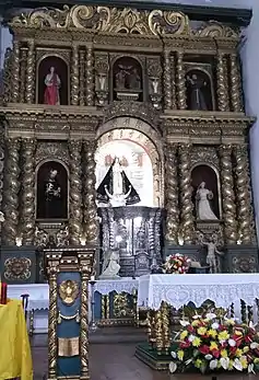 Se encuentra en la cabecera de la nave oriental, siendo un equivalente a la capilla de San Agustín puesto a que en este lado no hay un recinto semejante, ya que se destinó para ser la sacristía y no para un espacio de culto. El retablo se compone de un sotabanco y una plataforma que en su tiempo sirvió como altar para la celebración particular de la liturgia, sobre este aparecen las bases del nicho y de las columnas que se levantan imponentes con su fuste enroscado engarzándose a lo largo de estos una liana de hojas de acanto, típico de las de estilo salomónico.