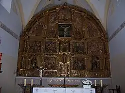 El retablo mayor es el mejor exponente del estilo clasicista de toda la comarca. Fue ensamblado por Nicolas de Pierres, hijo de Pierres de la Chapela, antes de finalizar el siglo XVI, pues un documento cuenta que en 1.601 ya estaba terminado. Consta de cinco calles separadas por columnas acanaladas en espiral rematadas por capiteles jónicos. Todos los retablos y especialmente el Retablo Mayor fueron restaurados cuidadosamente hace cuatro años.