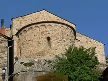 Tiene una única nave, una cabecera semicircular y un campanario de espadaña. La cabecera, al este, se compone de un único ábside decorado con arcada ciega.