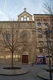 El solar, de 1641 m2, fue aprovechado al máximo (1300 m2) repartidos entre el convento, con cuatro plantas y un claustro, y la iglesia.[15] Su tipología es de una iglesia de manzana cerrada[16] mostrando en el exterior «un volumen unitario integrado en una manzana de viviendas con dos grandes paños lisos de ladrillo vistos».[17]