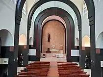 Una vez accedido al templo se encuentra el atrio en el que, en su parte izquierda, está la imagen de san Antonio de Padua, y a su derecha el acceso a la portería y a la vivienda de la comunidad capuchina. Una vez dentro del templo, se ven las imágenes del Padre Pío de Pietrelcina y en frente el Cristo de Medinaceli. El Vía crucis, obra del fraile capuchino y escultor Antonio Oteiza, se muestra como espacio de transición con las otras capillas laterales, donde se encuentran las de san Francisco de Asís y un Cristo crucificado. En las proximidades del presbiterio hay una imagen de la Inmaculada y enfrente la Santina.[3]