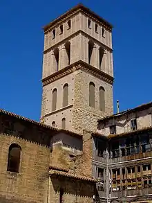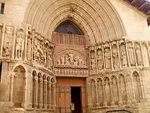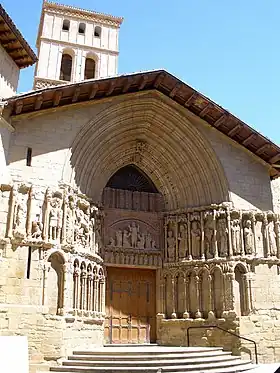 La vistosa portada gótica, del siglo XIV aunque con ciertas reminiscencias románicas, junto con la torre, es uno de los elementos más destacables de este templo.