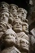 Se han identificado un total de 9 marcas de 7 tipos diferentes situadas en el exterior del templo, una de ellas un reloj de sol canónigo situado en un sillar reutilizado.
