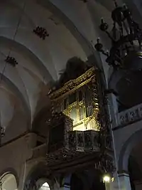 El órgano barroco de la iglesia parroquial se sitúa en el lado derecho de la iglesia (mirando al altar), en la mitad de la nave, adosado a la galería que corre a lo largo de ésta. Ha sido estudiado modernamente por la escritora Vinyet Panyella, y sus investigaciones han permitido datarlo en la década de 1690, cuando se registran varios documentos para hacerlo. Primero se acordó con el organista Bartolomé Triay, trinitario, la construcción del órgano. Posteriormente, el 5 de octubre de 1695, la Universidad de Sitges firmó un contrato con el escultor Joan Roig i Gurri para que se encargara de la caja del órgano. Dos años más tarde se encargó a Sebastián Font que pintara las puertas de la caja, que se dedicaron a los patrones de Sitges, San Bartolomé y Santa Tecla. En mayo de 1699 se consideró el órgano totalmente terminado.