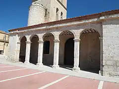 La iglesia fue levantada de estilo gótico-mudéjar en el siglo XIII, dispone de un arco de triunfo apuntado, que se funde con nave coronada, por torre de cuatro cuerpos.[1] Su retablo es rococó con numerosas pinturas y esculturas de entre los siglos XVI y XVIII. A la iglesia se accede por una escalera que conduce a un pórtico notable, de medio punto, que sirve como refugio a los rigores estivales e invernales, añadido en el siglo XVI.[2]