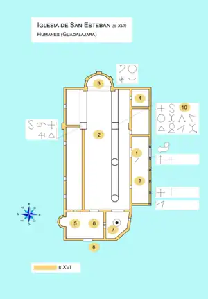 ![]() Aprox. a la planta de la iglesia. Signos lapidarios |