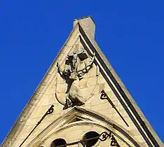 Los símbolos de San Eustaquio, santo que antes de su conversión había amado mucho la caza,[8] se ha recordado en varias ocasiones; están, por ejemplo, en la parte superior de los brazos del transepto (norte y sur) o en pedestales dentro de la iglesia.