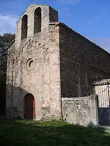 Se levanta cerca del castillo y en el mismo promontorio de piedra arenisca. Es de dimensiones muy reducidas, de tipo llamado pirenaico, con una nave rectangular y un ábside también rectangular ligeramente más pequeño que la anchura de la nave. Está construida sobre roca, con aparejo irregular, un poco más cuidado en las esquinas. Debido al terreno accidentado la orientación se ajusta de manera que el eje de la nave se quiebra en algunos grados hacia la izquierda con relación al ábside. Los muros sobresalen por encima de la superficie del tejado en la parte del fondo y del ábside.