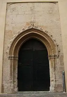 Esta iglesia se puede considerar el único vestigio arquitectónico del desaparecido convento de San Francisco, fundado por Jaime I de Aragón, del que formaba parte. Su primera ubicación fue fuera de a la muralla, pero fue destruido durante Guerra castellano-aragonesa de 1356-1369, llamada Guerra de los Dos Pedros (cuando la ciudad fue asediada por Pedro I de Castilla, el Cruel), reconstruyéndose (convento e iglesia) entre 1366 y 1377 en terrenos de la ciudad situados intramuros.[2]
