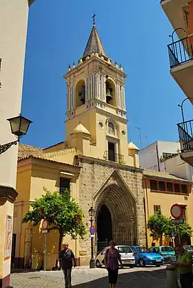 Se sitúa en una de las cotas más elevadas de la ciudad, donde excavaciones arqueológicas han encontrado los primeros asentamientos de la misma. Pertenece al grupo de parroquias fundadas inmediatamente después de la conquista castellana de la ciudad en 1248. La iglesia actual se construyó a mediados del siglo XIV, siguiendo los parámetros gótico-mudéjares propios del momento histórico en que se inscribe. A finales del siglo XVI o principios del XVII se reconstruyó de nuevo toda la cabecera de la iglesia, ampliando el presbiterio y creando dos capillas laterales: la de San Juan Nepomuceno (luego de los Villalpando) y la de los Maestres. Durante el siglo XVIII se agregan al templo las capillas de la nave del Evangelio y se realizan diversas reformas.