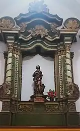 La imagen que se venera aquí es la de San Roque, una talla francesa procedente de La Statue Religieuse Paris Carton Romain, un taller continuador de la casa del maestro Ignaz Raffl.[6]