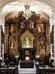 El retablo del altar mayor ocupaba todo el espacio posterior de la nave. Es de cedro con talla pulida con cuatro santos de bulto a los lados y dos nichos en el medio, el uno de San José y el segundo, dorado, de Nuestra Señora del Rosario con una corona de plata dorada que pesa once marcos y siete onzas.[3] El retablo de esta iglesia fue desarmado pieza por pieza y se encuentran actualmente en la Iglesia de la Virgen del Pilar en San Isidro, Lima, habiendo sido donado por los propietarios de la hacienda. Al respecto el Obispo de Ica, Monseñor Francisco Rubén Berroa dio a conocer que si bien de esta manera se protegió y conservó el retablo también la región perdió una valiosa obra de arte.[4]