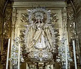 También en este templo reside también otra corporación de gloria que tiene por titular a la Ntra. Sra. de Montemayor, patrona de Moguer. El origen de la fundación a la Ntra. Sra. de Montemayor en Sevilla es que esta hermandad de gloria de Sevilla fue fundada en 1956 por un grupo de devotos y moguereños afincados en Sevilla.