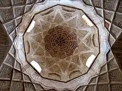 La iglesia tiene tres cúpulas diferentes: sobre la entrada occidental, un campanario de sección octogonal rematado por una cúpula piramidal en forma de abanico, una gran cúpula cónica sobre el salón central y sobre el altar una pequeña cúpula con un techo piramidal octogonal.