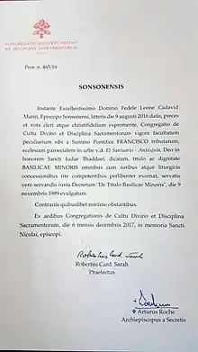 El 6 de diciembre de 2017, la Congregación para el Culto Divino y la Disciplina de los Sacramentos, otorgó el título de Basílica Menor al templo de San Judas Tadeo.