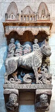 Las desgracias de este templo no han consistido sólo en servir como almacén de carbón durante medio siglo sino también en el expolio de sus mejores muestras escultóricas; así los relieves del hastial de poniente, perdido uno y conservado el otro en el Metropolitan Museum de Nueva York; Gómez Moreno los vio “in situ” y los describe de esta manera: A los lados de la puerta del hastial, en alto y sobre amplias repisas con cabezas y bustos humanos pulsando laúd y salterio, posan figuras de una leona, guardando quizá su cría, ante edificio con doseletes y arcos, y un león, teniendo enroscada una serpiente a sus patas; las cobijan guardapolvos con arcos redondos y flores. Obra del siglo XIII, en piedra. Tampoco se conserva en su hornacina una Virgen con Niño que pertenecería al siglo XIV o al XV.