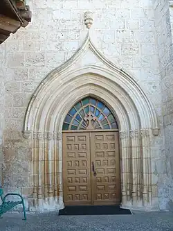 La entrada del templo estuvo protegida por un sencillo pórtico hasta que, en 1971, se eliminó dicho elemento. En vez de torre, tiene espadaña. Al contrario de lo que ocurre en otras iglesias del Valle del Esgueva, su portada está orientada al norte.