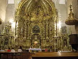 Dentro de la iglesia parroquial sobresalen el retablo mayor y el coro. Dicho coro consta de una sillería de nogal con 22 asientos en estilo barroco, facistol y reja a juego. En frente del coro, en posición este, como manda la tradición, se levanta el majestuoso retablo mayor.