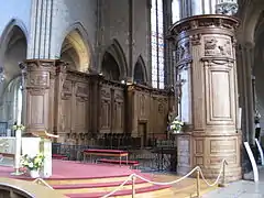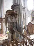 La fachada principal es única en su género por la mezcla entre el gótico y el del Renacimiento, que se debe a la fecha de construcción de la iglesia. La coexistencia de estos dos estilos arquitectónicos se explica por la importancia que tiene el arte arquitectónico en Borgoña en el siglo XVI con el retorno de las formas antiguas y la influencia del arte italiano. El ábside, el coro, la nave central y el transepto son góticos; la nave se terminó alrededor de 1513. La obra se reanudó en 1529 y la fachada, sus dos torres en forma de cúpula, acabadas en 1569 y 1667, sus ornementos con la superposición de tres órdenes (dórico, jónico y corintio) se inspiran en el Renacimiento.[2]