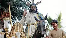 La capilla de los pies fue construida en 1927. Actualmente está ocupada por las imágenes de la Hermandad de la Borriquita. El Señor de la Entrada Triunfal es obra de Antonio León Ortega, quien lo talló en 1946. El mismo escultor haría tres años después a la Virgen de los Ángeles, aunque su impronta actual se debe a la intervención de Elías Rodríguez Picón. De este último escultor son también las imágenes contemporáneas de San Juan, San Pedro y Santiago.