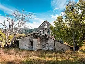 Consta de una cabecera cuadrangular y una sola nave, que se remata con una espadaña a la que se accede desde una escalera exterior, mientras que su acceso se recoge bajo un sencillo pórtico de madera. La portada, único elemento de sillería del conjunto, aún estando revocada, presenta un arco de medio punto liso que queda rodeado por otro arco, de herradura, ligeramente adornado. Por su composición y simpleza, podría encuadrarse a inicios del siglo siglo XIII. El arco de herradura superior debería atribuirse a la falta de técnica de los canteros, y no a influencias estilísticas anteriores. Cabe nombrar una de las dos campanas que se conservan, de época tardogótica.