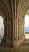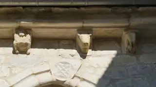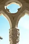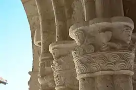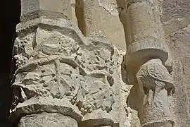 Al mismo tiempo, en el interior del pórtico los contrafuertes están decorados por pilastras con capiteles ricamente decorados con diversos motivos tanto vegetales como animales y humanos. Así mismo, las ménsulas de los arcos ojivales que sustentan el interior del pórtico muestran «pavorosos monstruos».[3]