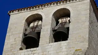 Tiene un campanario rectangular con dos vanos en la parte superior que repite la tipología y localización de las torres medievales.[3]