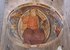 A finales del siglo XV la fachada superior estaba acabada y la nave central cubierta de bóveda. Los frescos en el ábside datan de 1506, ejecutados por Bernardino del Signoraccio. Hoy solo sobrevive la parte central, con el Padre apoyado por cuatro ángeles. Los altares en las naves laterales se añadieron en el siglo XVII, con pinturas de artistas como Cristofano Allori, Alessio Gimignani, y Girolamo Scaglia.[1]