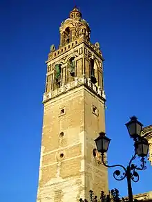 Se caracteriza por ser la única de la ciudad que posee planta rectangular, reutilizando el fuste del antiguo alminar de la mezquita. Heredera directa del campanario trazado en 1568 por Hernán Ruiz II para la Giralda de Sevilla, su fisonomía actual se remonta a las obras efectuadas a lo largo del siglo XVIII, en las que intervinieron maestros de la talla de José Páez de Carmona y Juan Núñez.