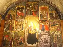 La iglesia cuenta con un retablo originario del XV, que representa varias escenas bíblicas de la vida de la Virgen María.[2][3] Está considerado una obra maestra de la pintura gótica.[3] Ha sido recientemente restaurado por el Centro de Restauración de Bienes Muebles de San Cugat.[3]