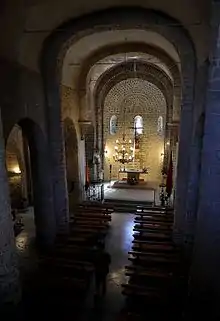 Las naves están divididas en cinco tramos, y se comunican mediante arcos formeros, semicirculares, que se soportan sobre las pilastras, rectangulares pero con las semicolumnas adosadas que acabamos de mencionar. El muro norte fue muy transformado a lo largo de los tiempos, con el añadido de capillas (una de ellas es gótica). La perfección de la unión de estas capillas con la iglesia románica hace pensar en la existencia, quizá, de una cuarta nave románica, posteriormente derribada para la construcción de las capillas.