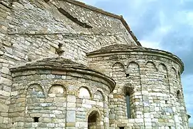 Tiene tres ábsides orientados a levante, el central más grande que los laterales, de fuerte espectacularidad, sobre todo desde que se limpiaron de las edificaciones que los tapaban parcialmente. Están ornamentados con lesenas y arcadas lombardas, con ménsulas triangulares muy elaboradas.
