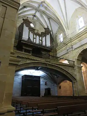 En 1592 se detectan problemas estructurales, debidas a los efectos de los incendios que se habían producido y a la inestabilidad del subsuelo. En 1607 se encarga a a Ibáñez de Zalbidea un estudio de reparación de los daños existentes del cual emana la decisión de rehacer la capilla mayor que se encarga a Martín de Ormaechea asociado con Juan González de Matategui, los cuales comienzan la obra en 1609 pero deben ser detenidas al como tiempo al no tener estabilidad la construcción. Se encarga un estudio a los arquitectos Miguel de Aranburu, que era fraile franciscano y al vitoriano Juan Vélez de Huerta que determinan los problemas de la traza y realizan un nuevo proyecto que encargan para su construcción a los canteros Bernabé Pérez de Solano y Martín de Arriluceaga. Se actúa en la zona de la cabecera, pilares y capillas y se levanta, con el objetivo de reforzar las bóvedas del coro, un pórtico a los pies del templo, función que no cumpliría.[8]